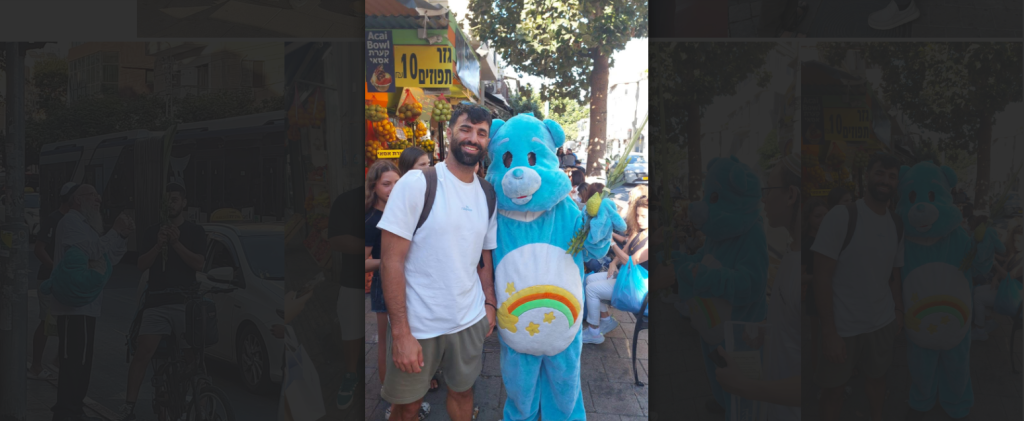"באופן אישי", הוא או לנו, "אתה באמת לא רק משפיע, אלא המפגש הזה עם העוצמות האדירות של עם ישראל – מרטיט ומטלטל אותך ואתה מקבל ממנו המון. בשנה שעברה פניתי לבחור צעיר עם קעקועים שנראה הכי רחוק מזה, והצעתי לו ליטול לולב. בהתחלה הוא סינן 'עזוב אותי', אבל לא ויתרתי. חייכתי ואמרתי לו, 'אחי, זה ייקח לך בדיוק דקה, זו מתנה לנשמה'. משהו במבט שלי כנראה ריכך אותו. הוא עצר לרגע, ובשקט לחש את הברכה. אחרי שסיים לנענע, הוא הסתכל עליי בעיניים לחות ואמר 'תודה. באמת תודה'. הרגע הזה שווה את כל המאמץ של שנה שלמה. זו לא הרגשה של 'זיכיתי' אותו, אלא הרגשה שזכיתי בעצמי להיות שליח לרגע קטן של גילוי. זכיתי לראות במו עיניי את היופי והעוצמה של עם ישראל".